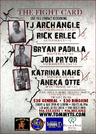 The night will also feature Adult Muay Thai bouts as well. Two adult men's fights will headline the nights DUAL Main Event! Rising star T. J. Archangle of San Francisco, CA is the current IKF California Light Welterweight Champion and will defend his title against Rick Erlec of Concord, CA. Plus, IKF California Super Welterweight Muay Thai Champion Bryan Padilla of San Jose, CA will defend his title against Top Contender Jon Pryor of Sacramento, CA.