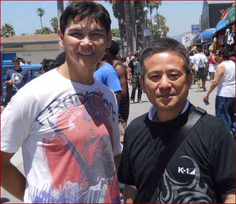 on Venice Beach with Mr Kim the new owner & head of K-1 Kickbxing.