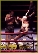 It was what everyone wants in a Main Event and what Everyone wants in a Title bout, especially a WORLD TITLE BOUT! IKF Pro San Shou Intercontinental Champion Rudi Ott of San Jose, CA, USA was the number 1 contender for the vacant IKF Pro San Shou Rules Middleweight World Title. With only a month to go to this event, matchmakers were still having trouble finding a worthy opponent. Enter IKF Pro Full Contact Rules Middleweight World Champion Dave "Madman" Marinoble. Marinoble saw an opportunity for another World Title to add to his FCR World Title and an addition to his other 6 IKF Title belts (3 Amateur & 3 Pro) and formally requested to be selected as the challenger for the Title against Ott. A week later, after a lot of background checking of Marinobles Mixed Martial Arts and Sport JuJitsu experience the IKF Title Board finally approved Marinobles (Right with trainer Greg Kirkpatrick) challenge request. In the beginning the odds heavily favored Ott. with an overall "SAN SHOU" fighting record of 26 wins against only 3 loses with 8 wins coming by knockout many thought this was easily Ott's Title to win. Why? Although Marinoble entered the challenge with a perfect 16-0 record with 2 draws and 8 wins by TKO/KO, none of his wins were in bouts that had leg kicks let alone knees to the body and worse yet, the explosive THROWS of San Shou. However, what others didn't know was Marinobles experience in Mixed Martial Arts and Sport JuJitsu where he fought mostly as an amateur complying a 20 win record against 6 loses along with a 6-1 amateur boxing record. The question was, "Was Marinobles additional experience enough to overcome Ott's experience as a veteran San Shou Style fighter?" As fight time came closer and closer we had the pleasure of reviewing some video of Marinoble's past experience. By Friday morning, a day before the bout, we had the two fighters at even odds to win the title, that is, if we were ones to set odds. This surprised many, especially those in the San Shou world where some expected Ott to, quote - unquote, "Throw Marinoble around like a rag doll." These words were not from Ott's camp. Ott's camp, like Marinobles had great respect for their opponent. With this all being said, Saturday nights IKF Pro San Shou Rules Middleweight WORLD Title finally came. Here's a round by round rundown of the action.