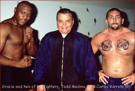 Today, February 1st, 2006, the world of Martial Arts lost a Great Man. Master Carlson Gracie passed away today in Chicago. No doubt the Jiu-Jitsu community will mourn his loss but ALL of us connected in so many ways with the Martial Arts through Mixed Martial Arts will mourn the passing of this great man as well. His name will always be remembered in Martial arts history. The Jiu-Jitsu Grandmaster was in Chicago, USA. According to his son Carlson Jr, Carlson had been known to have suffered from diabetes was hospitalized for kidney stones and was doing well: 'He was cracking jokes last night and everything seemed ok. This morning he had a fatal attack and succumbed!' His best friend, Oswaldo Paquetá, confirmed his death this morning. The cause was not yet totally cleared up by doctors. His body will be sent to Brazil for burial. Carlson Gracie Sr. was a practitioner of the Brazilian martial art of Brazilian Jiu-Jitsu. He learned the art from his father Carlos Gracie, co-founder of the system with his brother Helio Gracie. He fought many grappling and Mixed Martial Arts matches and was the author of a book on the subject, Brazilian Jiu-Jitsu: For Experts Only. He was born on August 13, 1935 in Botafogo, Rio de Janeiro, Brazil. He become one of the most prolific fighters in the history of the Gracie family and is considered by some to be the best mixed martial artist of his era. At the time of his death he was a 9th degree black belt and referred to as Grandmaster. Carlson entered the ring at the young age of 17 to defend the honor of his family and the family name. Santana Valdemar (sometimes referred to as Adema Santa) was a Brazilian Jiu-Jitsu fighter, famous for defeating his former master Hélio Gracie on May 24, 1957, in a record-breaking 3 hours, 45 minutes long match. Valdemar had fought for the Gracie academy for many years but had a falling out with Hélio Gracie. Hélio Gracie and Santana decided to settle their differences on a Vale-tudo (no holds barred) match. After nearly 4 hours of combat, Santana struck Hélio with a kick to the head. Hélio passed out from the blow and Santana was awarded the victory by TKO.