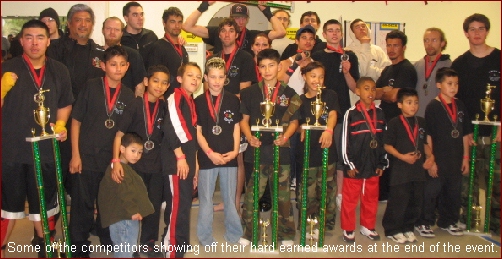 Special Thanks to Guila's Kickboxing staff for all of their support! Hats of the all of the great fighters and their gyms for their support as well! North Bay Kung Fu of Napa and Sonoma, CA, Robison's Tae-Kwon- Do of Sacramento, CA, FSA Jiu-Jitsu of San Francisco, CA, The Dragons Den of Union City and of course all of the fighters and parents of Guila's Kickboxing for making this event a success! Also wanted to acknowledge 7X Creative Forms World Champion James Solis and Scott Wu who captivated the crowd with their world class forms and impressive acrobats as part of intermission entertainment!