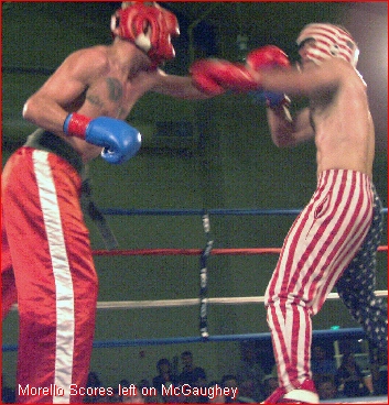 However, with the point deductions, the judges scored 29-27 Mason, 28-28 Draw, 28-29 Krantz. When asked if they were ready for a forth round both fighters agreed, NO, so This Match Was Determined a DRAW.