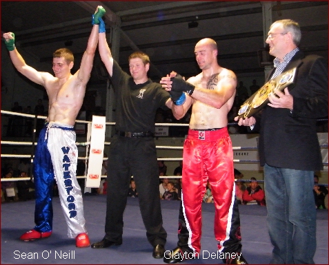 The Dragons Lair Kickboxing Gym in Kilkenny which only opened its doors about 12 short months ago had its first IKF Sanctioned Full Contact Kickboxing promotion in Kilkennys O' Loughlin Gaels GAA Club on Sunday. If they were out to make a statement, they certainly did that and more! Promoter Bernard Doyle and his team put on a top class show with an action packed fight card that was witnessed by over 800 enthusiastic and very vocal fight fans. This show had junior fighters, senior fighters, an amatuer IKF All Ireland Title fight, International Bouts (both Amatuer and Professional) and all the phizzazzz of a well organised event! Most of all, in these dark economic times, it had extremely well priced tickets designed to give the fans more value for their money and take the sting out of the cost for the pure entertainment. it was an offer for hard pressed families and fight fans that was greatly appreciated by all. The show went smoothly and all the Judges, Referees and Officials worked hard and delivered good verdicts with no arguments from either corner. One fight that stood out was between two young ladies who had the place Rumbling and on the edge of their seats. The result was a draw and they were Megan Maher from Pat Rockets Gym in Waterford and Helen Meagher from the Dragons Lair Camp in Kilkenny. Another cracker of a contest was the IKF Middleweight fight which was for the recented vacated belt. This was between local hero Clayton Delaney and Waterford fighter Sean O' Neill. These two had a little bit of history as Delaney had Knocked out O' Neill in Waterford about 4 months ago. This fight was about pride as well as the IKF belt that seemed to spur O' Neill on to a closely fought victory to win the Title. However Clayton Delaney can certainly hold his head up high as he had O' Neill on the back of his heels and covering up several times throughout the 5 rounds. IKF Representative Mr. Pete Foley commented that it was a first class and extremely competitive fight that could have been a main event anywhere on the planet. Then of course you had the two main events which certainly didn't fail to deliver as John Paul Soammes and Vinny Di Ruscio both knocked out their Welsh opponents, Soammes with a left hook body shot in the 4th and Di Ruscio with a spectacular head kick at the end of the 1st round. | ||||||||||||||