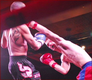 A big fight in the rematch was expected as in their previous bout, Noe "The Destroyer"Cervantes won by a unanimous decision in three rounds. This time out, "Destroyer" and Cervantes did not mince words from the openning bell. In round 1, Noah landed 2 kicks on Cervantes and shook him up. However he absorbed quite well by demonstrating good preparation, because the blows were hard! In rounds 2 and 3 things were going Noah's way as he won the fight unanimously, which was much celebrated by the women's club that accompanied the Vallertense.