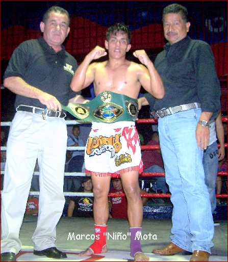 Diaz never backed down but it was clear after he felt a few of Niño's strikes, he took precautions. In the fourth round Diaz was sent back to the canvas completely limp, but bravely continued to the last minutes of combat. The decision of the judges was a mere formality. When it was officially announced the fans that came to watch this great fight at the Collage Club Greeted the announcement with a standing ovationas Marcos (Niño) Mota, from Puerto Vallarta was clearly the Champion.