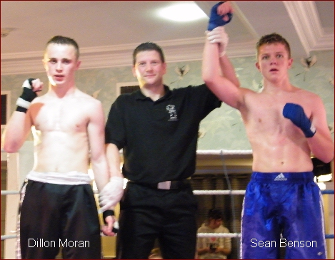 1. Patrick Mc Fadden from Donegal Black Dragon defeated Claude Barrett from Ross Barretts gym, Cappaquin by majority decision, 30-28, 30-30, 29-28.