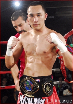 • QS: A classic Muay Thai fight was fought between TJ Arcangle and Roberto Morales for the IKF US Light Welterweight title. Arcangle (who before the fight preformed the full traditional Thai pre-fight dance) proved to be the faster striker, landing better hits through five rounds against the athletic and very game Morales. Arcangle ended the fight ahead on all cards and the new champion.