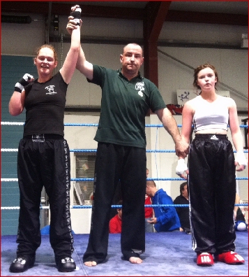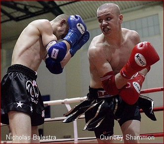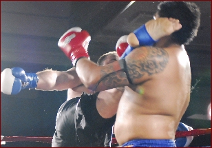 From start to finish, Vigney showed he wanted what he thought should have been his in the first place much more than the Champion showed he wanted to keep it. (Action of this bout at right) In the ring with the two this time would be a more seasoned, experienced referee, Dan Stell. As the final bell sounded, there was no doubt from anyone. We all knew there was a new Champion, and a proud one at that as Vigney got his revenge, defeated and took from Hurny the IKF Super Heavyweight USA Title by unanimous decision, 49-44 on all 3 judges cards.