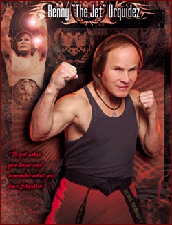 Benny "The Jet" Urquidez was one of the most explosive American kickboxers of all time! Today he is a martial arts choreographer, actor but most proudly today, a Teacher. Nicknamed The Jet, Urquidez was a non-contact karate competitor who later pioneered full-contact fighting in the U.S. He made the transition from point to full-contact karate in 1974 (The year of its inception in the USA) frequently fighting in bouts where the rules were ambiguous and contrasts in styles were dramatic.