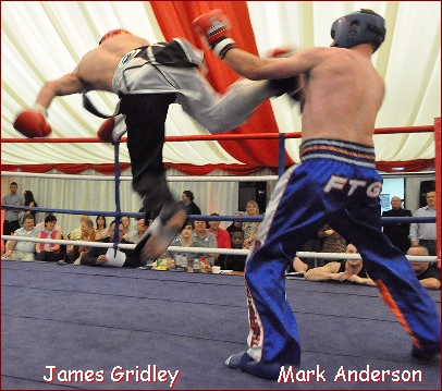 Headlining the KOMBAT ZONE event was 3 great title fights. Kelly Copeland won the IKF British Lightweight title in dominant style. Steve Raybould won the IKF British junior title at featherweight whilst James Gridley stole the show in a defence of his IKF British Middleweight title. Gridley forced the referees to stop the bout in the 4th round after landing TWO jumping kicks in a space of 15 seconds, both kicks hitting the target clean. This was filmed by MAAction.com and hopefully footage will soon be available.