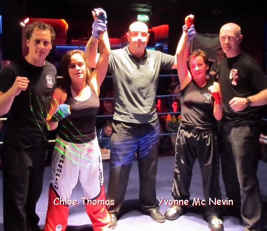 Gary Manogue from Galway Black Dragon took on Welsh hard man Andrew Davies in a 4 round International bout. Although it went the distance with some good exchanges, Manogue took the win bringing his record to 17 and 0. Yvonne Mc Nevin from Galway took on Chloe Thomas from Wales on a weeks notice. Mc Nevin managed to get a well deserved draw. Junior fighter Troy Nolan from Galway defeated Waterfords Ryan Erkal in an entertaining contest in both young mens full contact debuts.