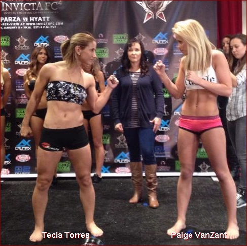 At weigh-ins today (Below) Torres weighed in at 115.6 while VanZant weighed in at 113.8.