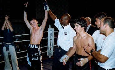 The fight was a non stop seven round war, with neither fighter willing to take a backward step. SUSANO'S strong body kicks and sharper hands swayed the judges. The New Champion - Bruno Susano of Portugal.