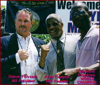 World Champion Kickboxer Trevor Ambrose of Bournemouth, England with IKF President Steve Fossum,
